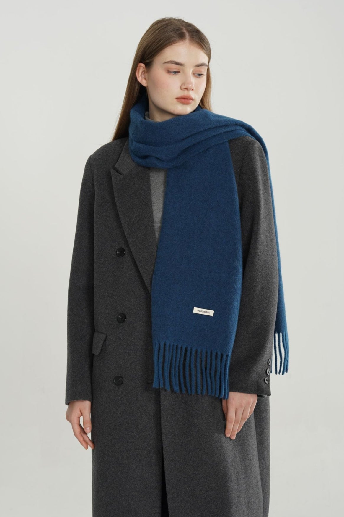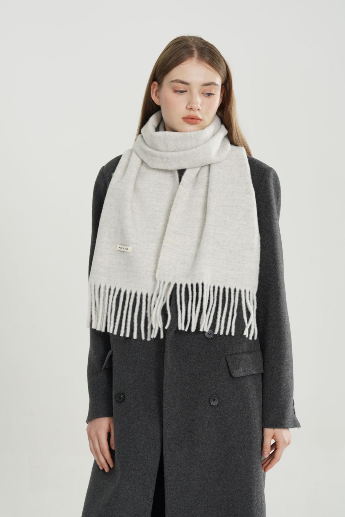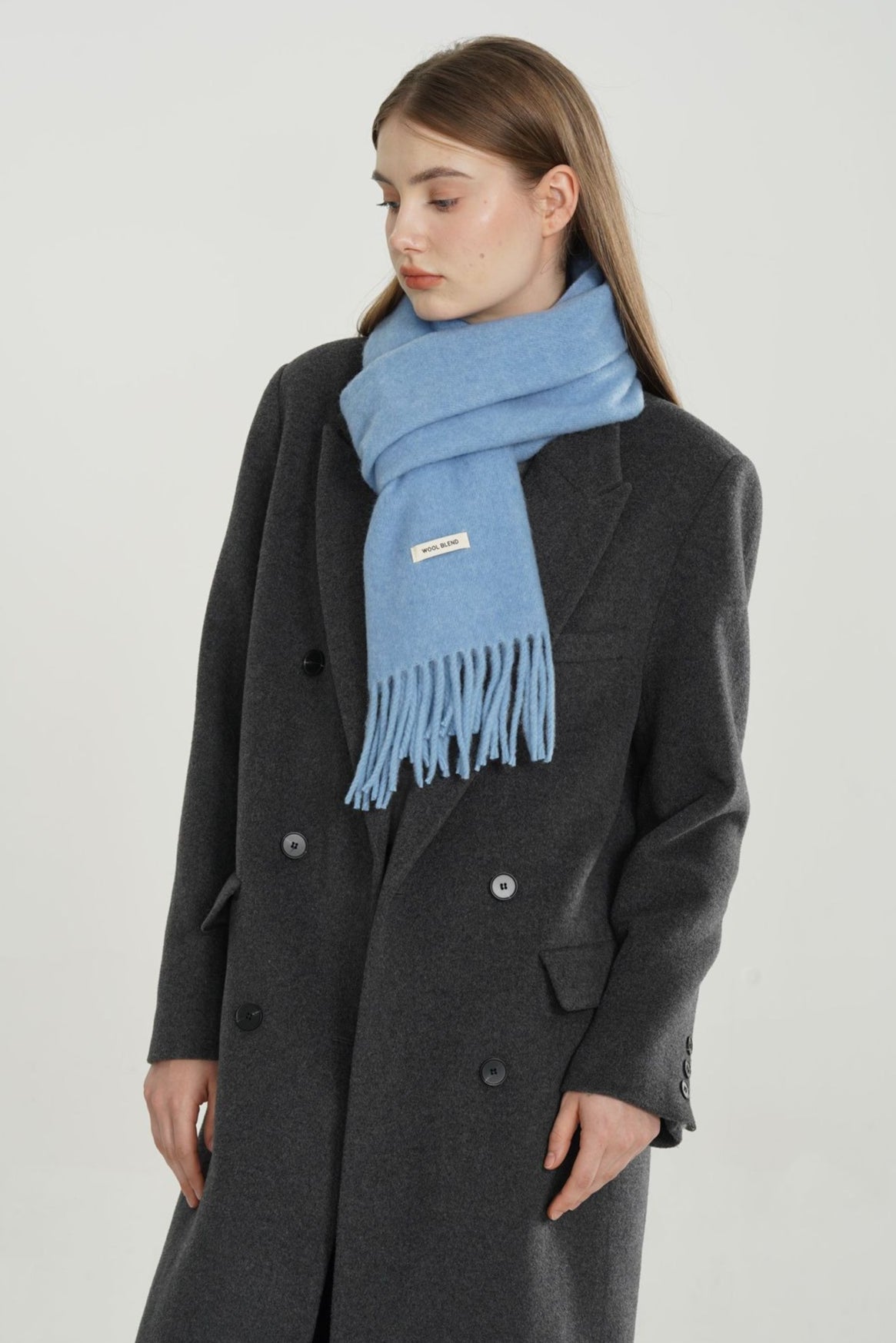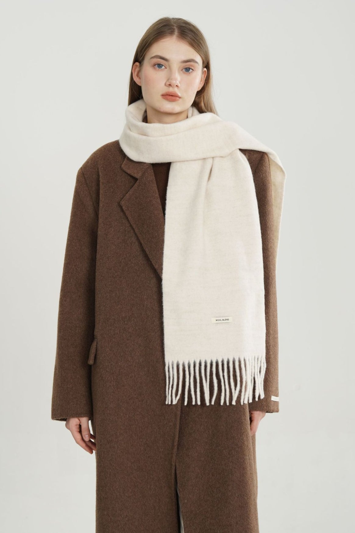 Wool Blend Minimalist Solid Woven Fringed Scarf
