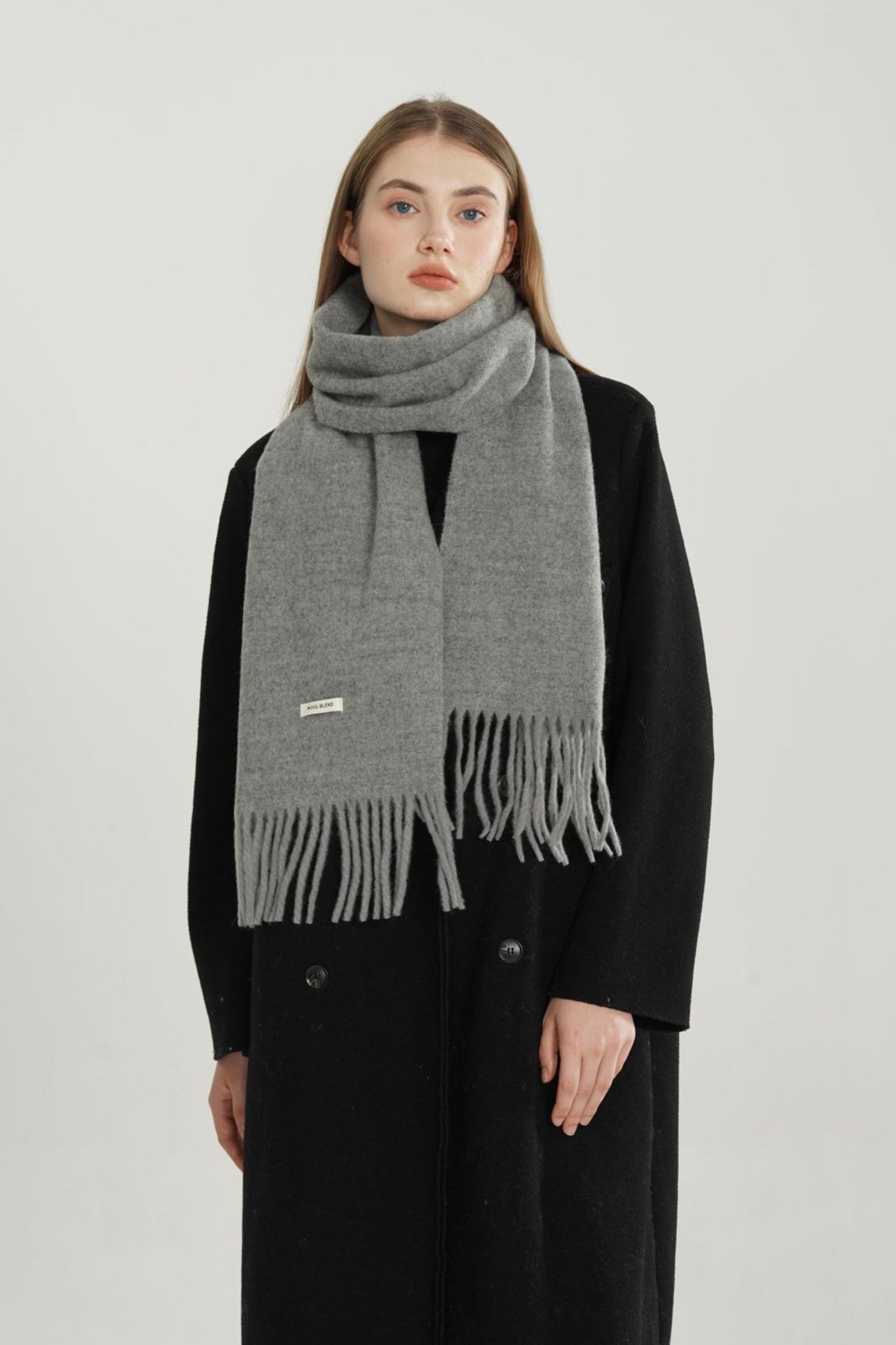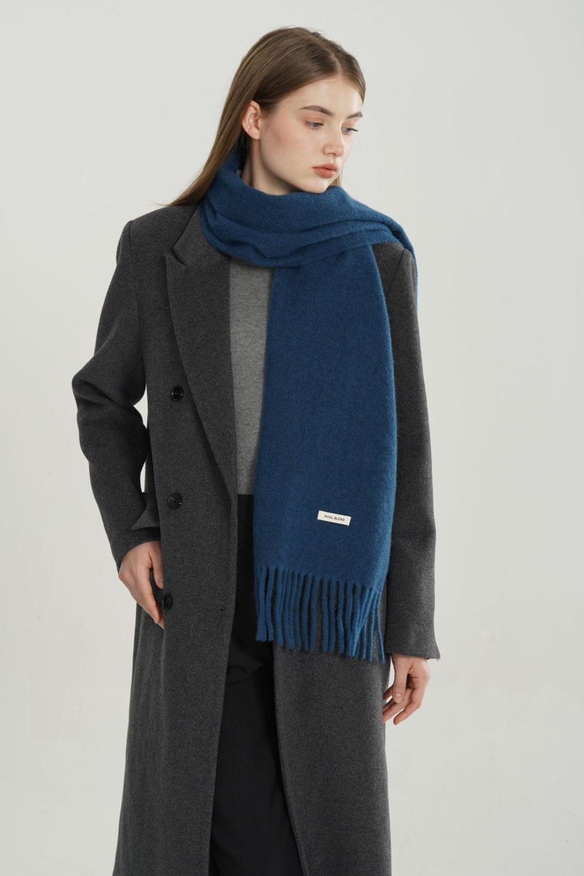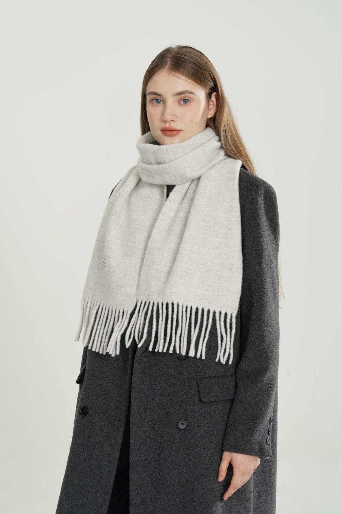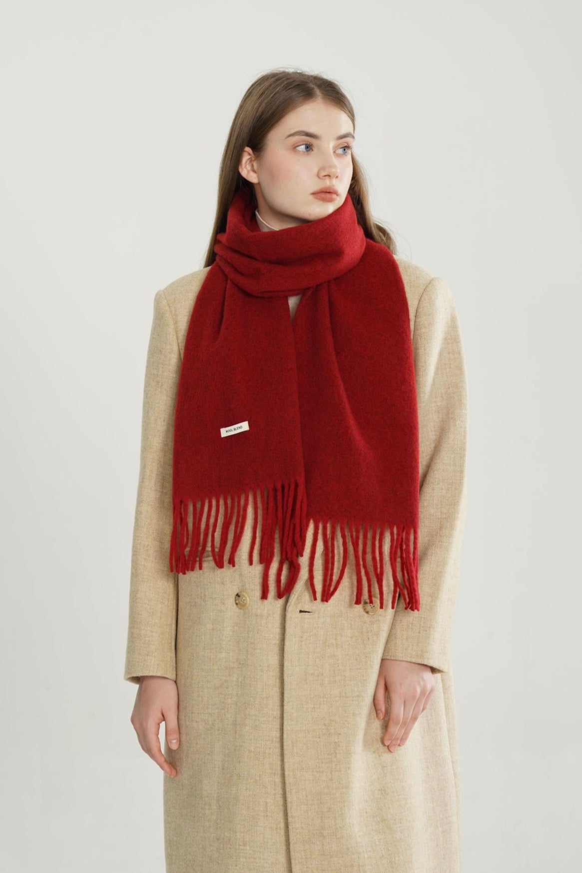 Wool Blend Minimalist Solid Woven Fringed Scarf