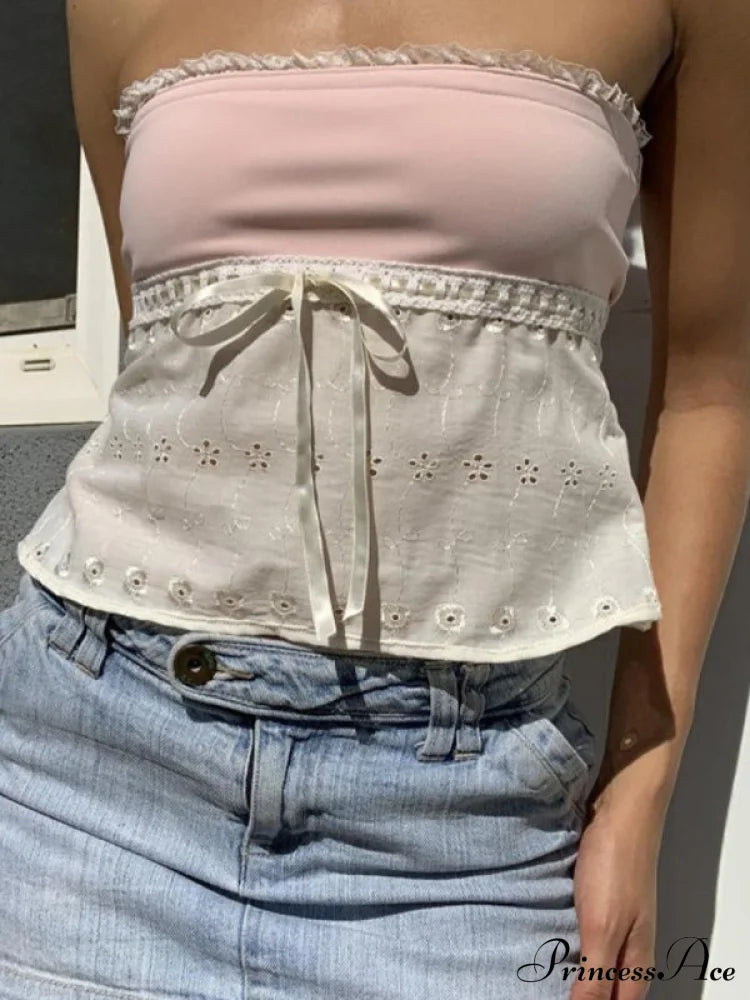 Delicate Lace Hollow Splicing Sexy Slim Crop Top