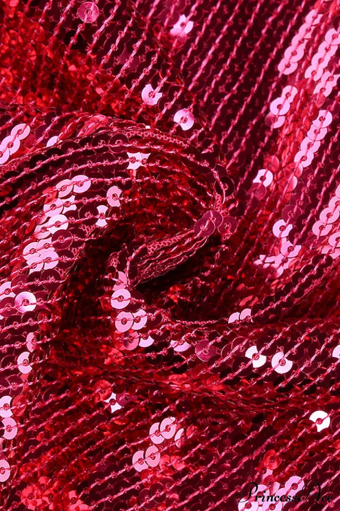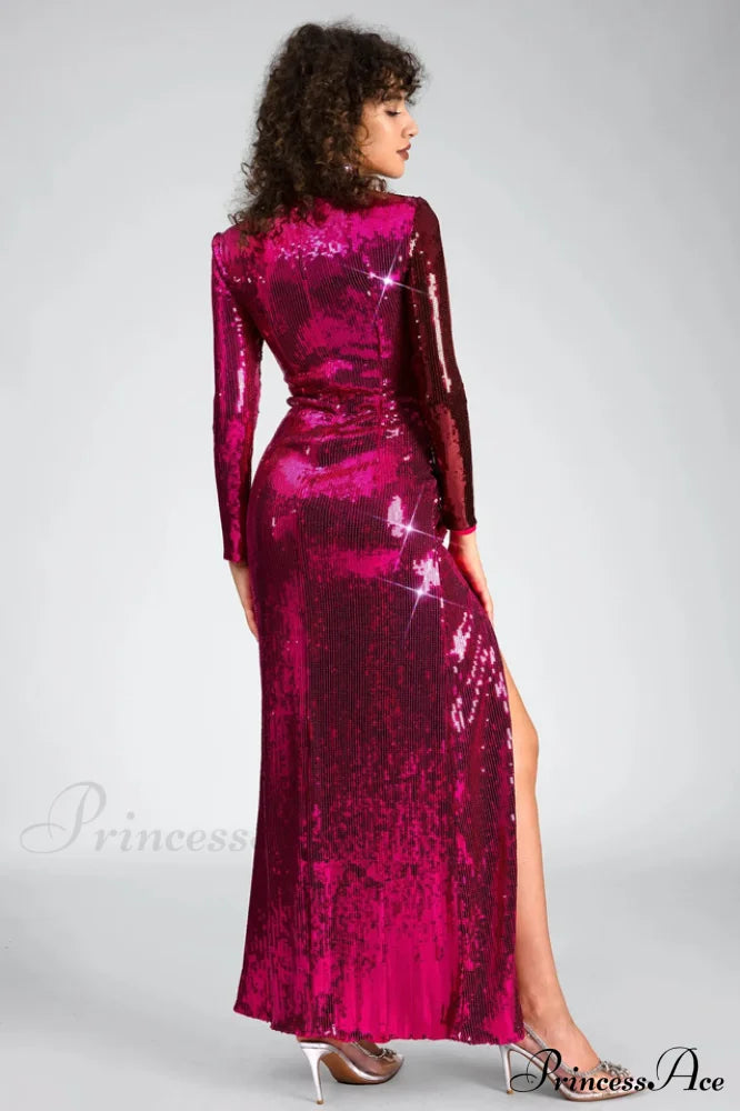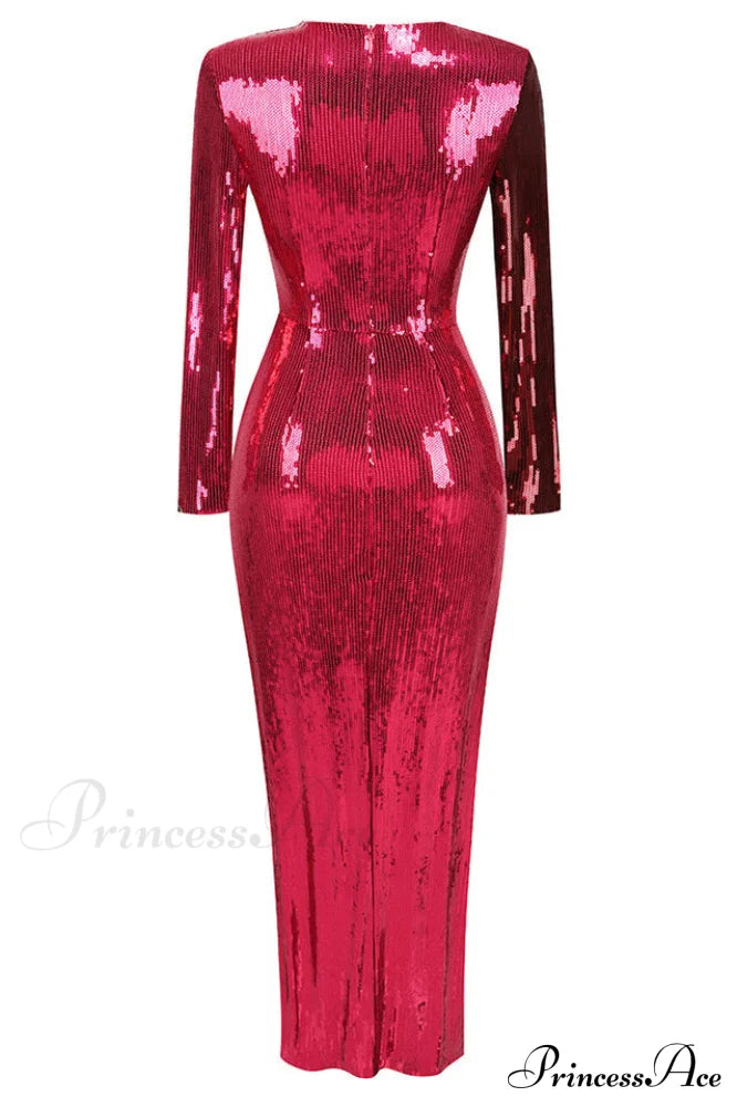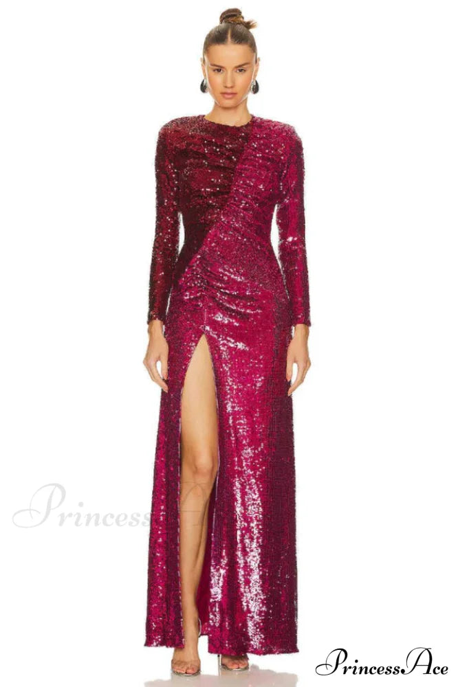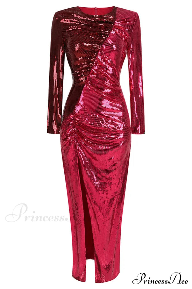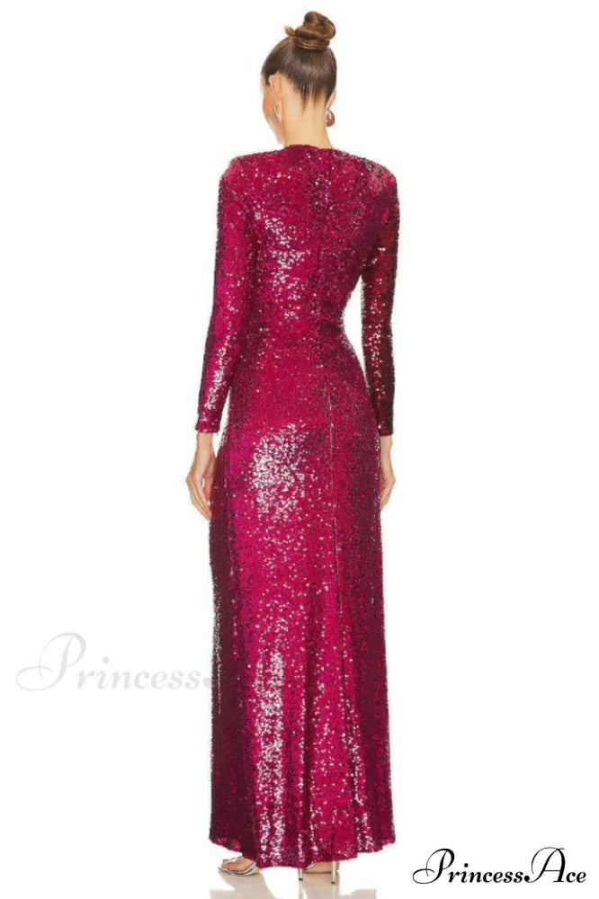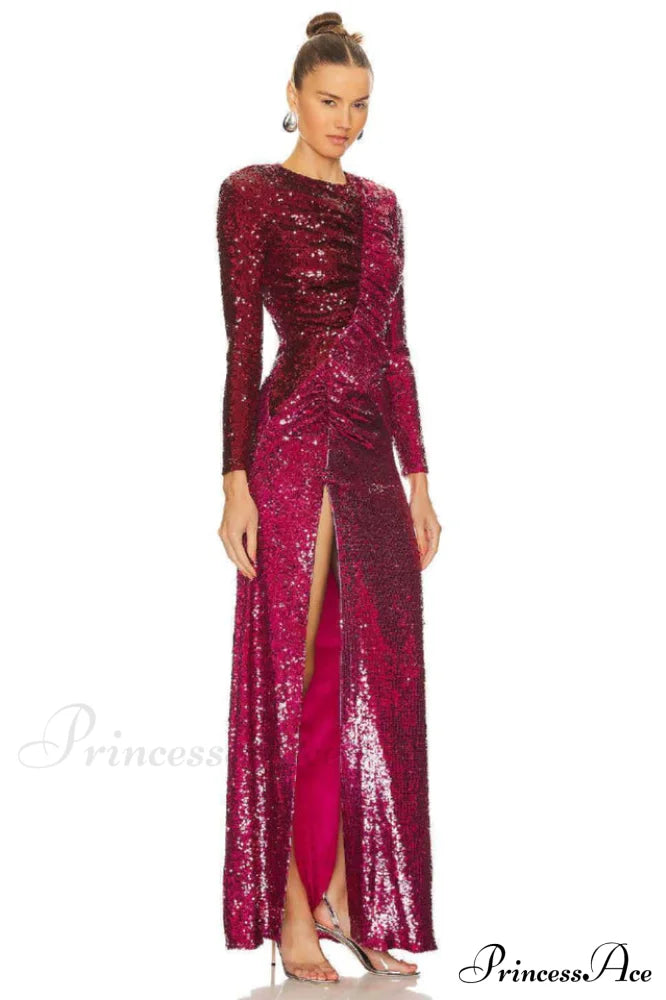 Burgundy Ruched Stylish Sequined Maxi Dress