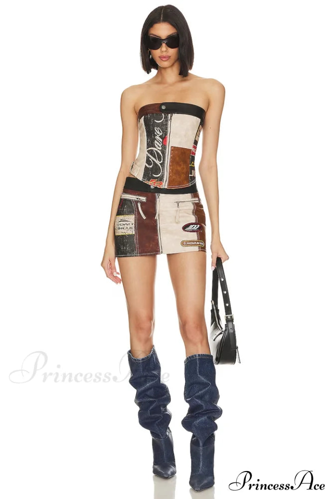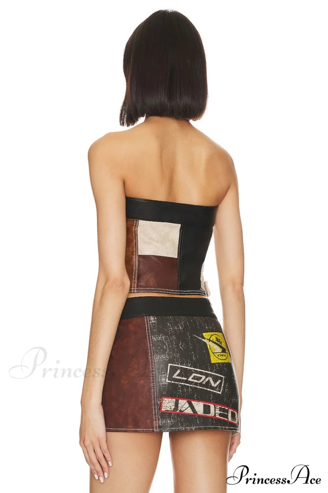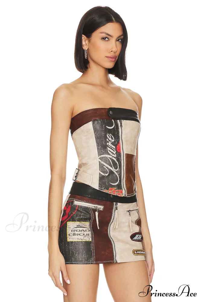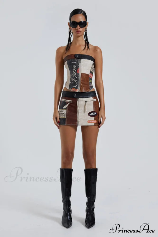 Elevate your look with the Daytona Vegan Leather Top + Skirt Set. This corset style top features a popper fastening, dipped hem detail and a functional buckle to complete the look. This mini length skirt features a popper fastening at waistband, moto panelled detailing and hardware details.