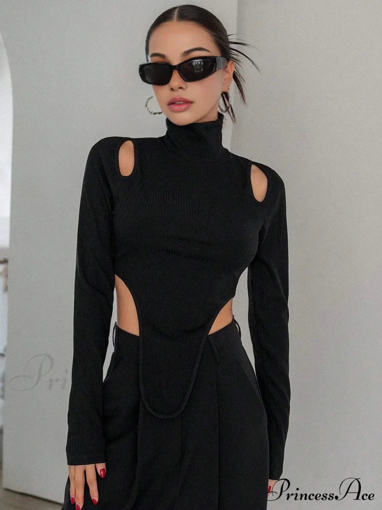 Cut Out High Trendy Neck Asymmetric Hem Top